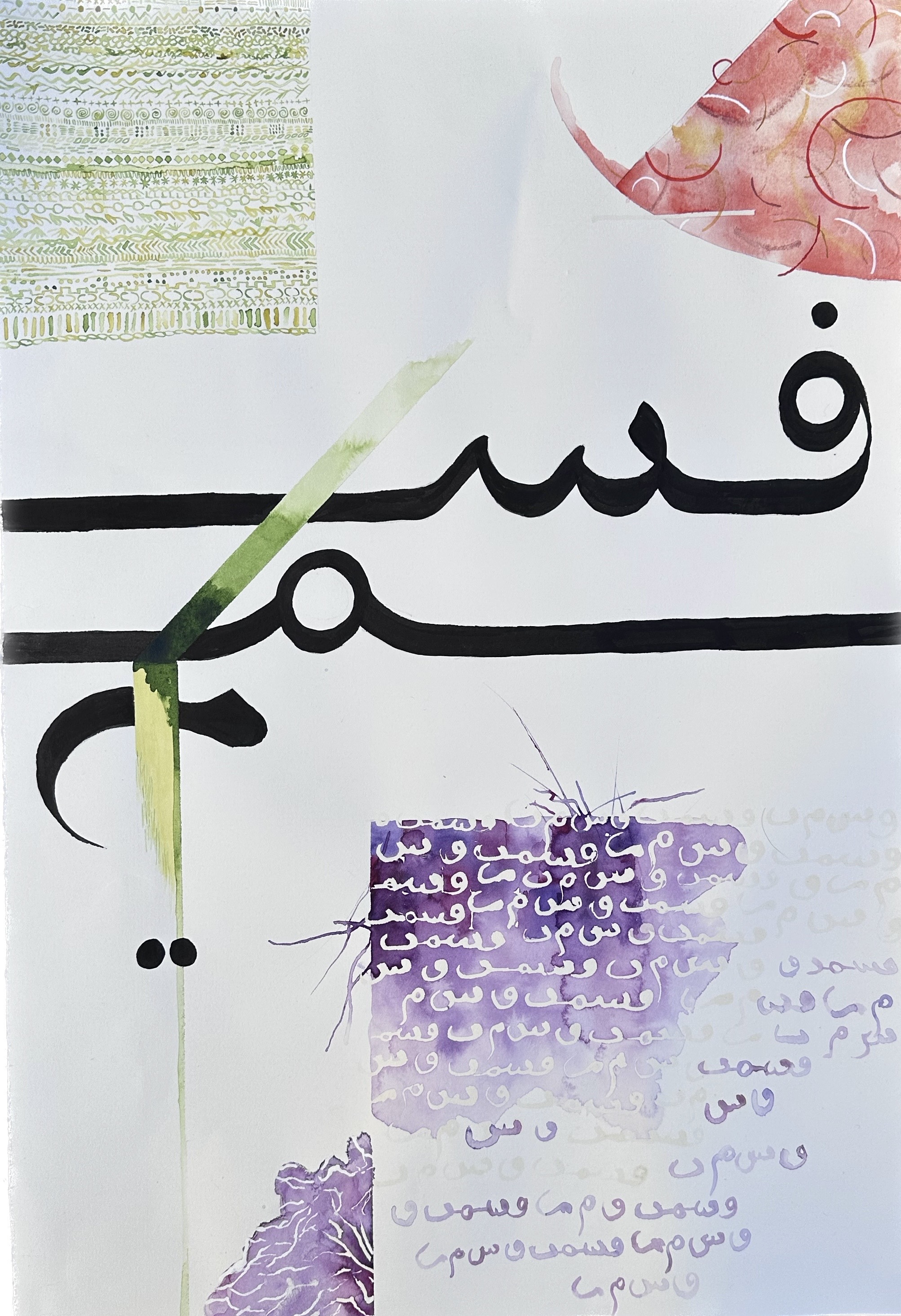 Ishq عشق 12″ x 8″Watercolour & ink Qismat قسمت 22″ x 15″Watercolour & ink When poetry itself becomes a muse An ode to my love for Urdu poetry 4 pieces measuring 10″x10″ Vasl وصل Hijr ھجر Firaq فراق Vafa وفا