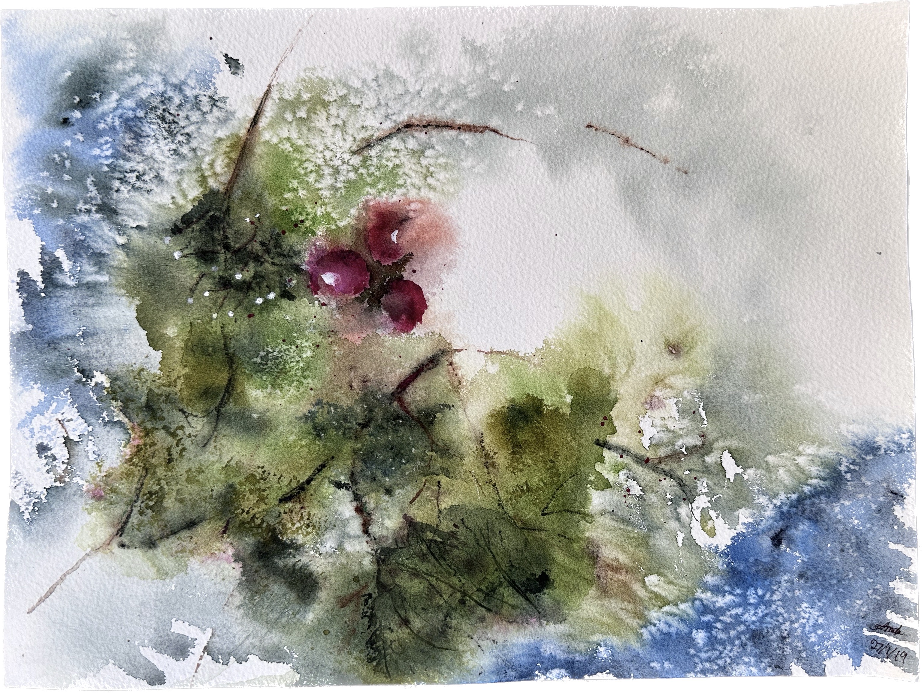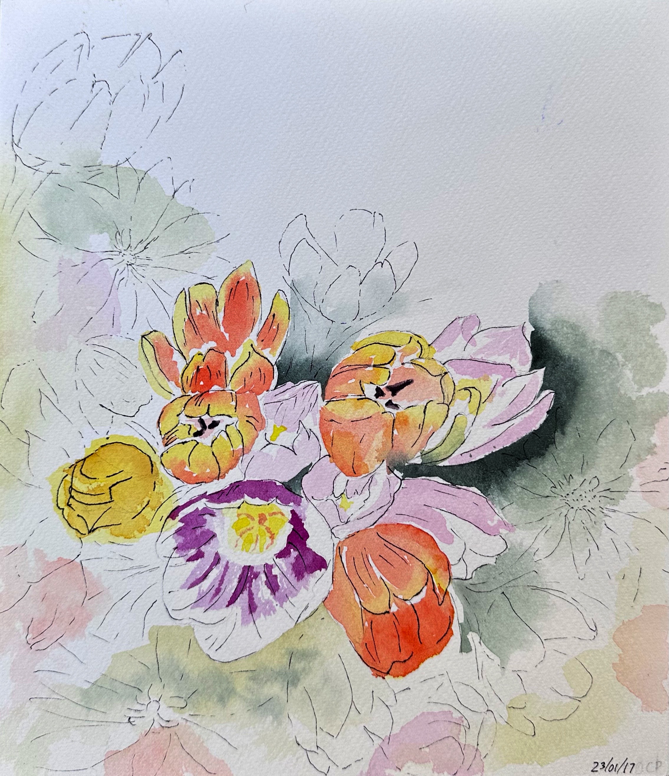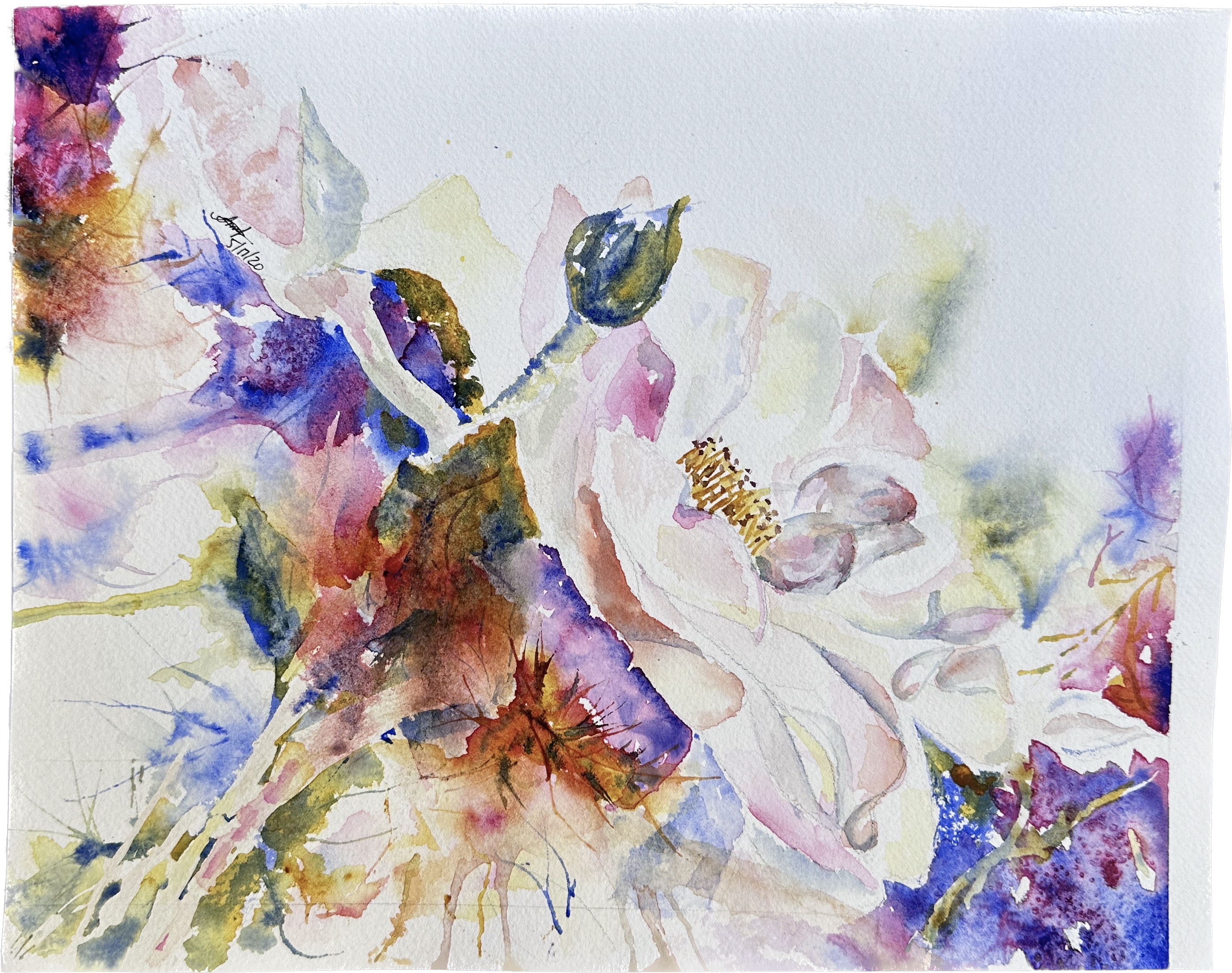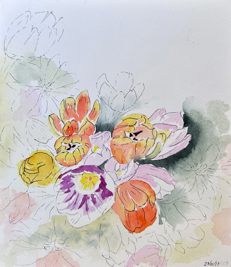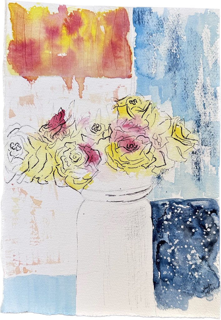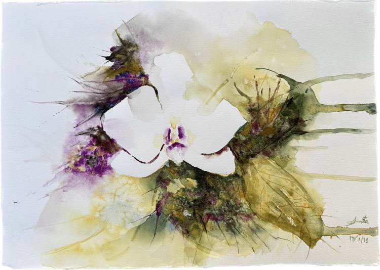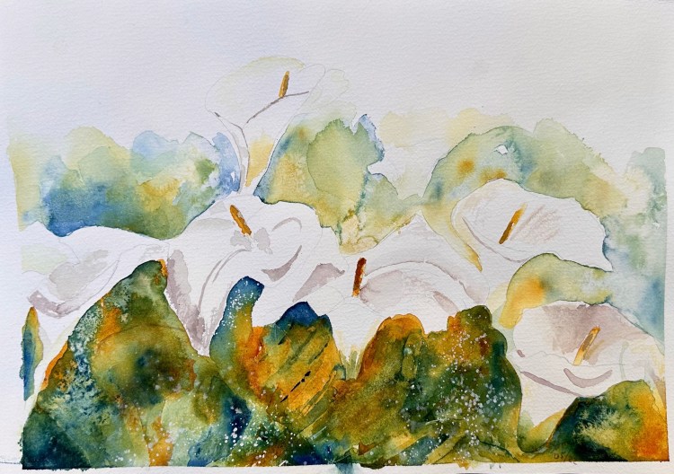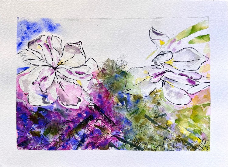 Shrubs 10″ x 7″ Watercolour Orange bouquet 10″ x 7″Watercolour & pen Happy flowers 11″ x 8″Watercolour & ink Dancing in the wind 10″ x 7″Watercolour Partially painted Watercolor & pen10″ x 9″ Branch on the sidewalk Watercolor & walnut ink12″ x 9″ Fall in Lyon 2020 White rose 12″ x 9″Watercolour Bouquet 14″ x 10″Watercolour & pen Simplicity 12″ x 8″Watercolour White flower gone rogue 11″ x 8″Watercolour Spring in a new country 12″ x 9″Watercolour & ink Memories from cala lily valley 14″ x 10″Watercolour Spring lilies 12″ x 12″Watercolour